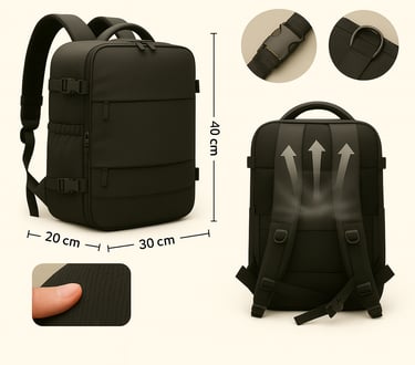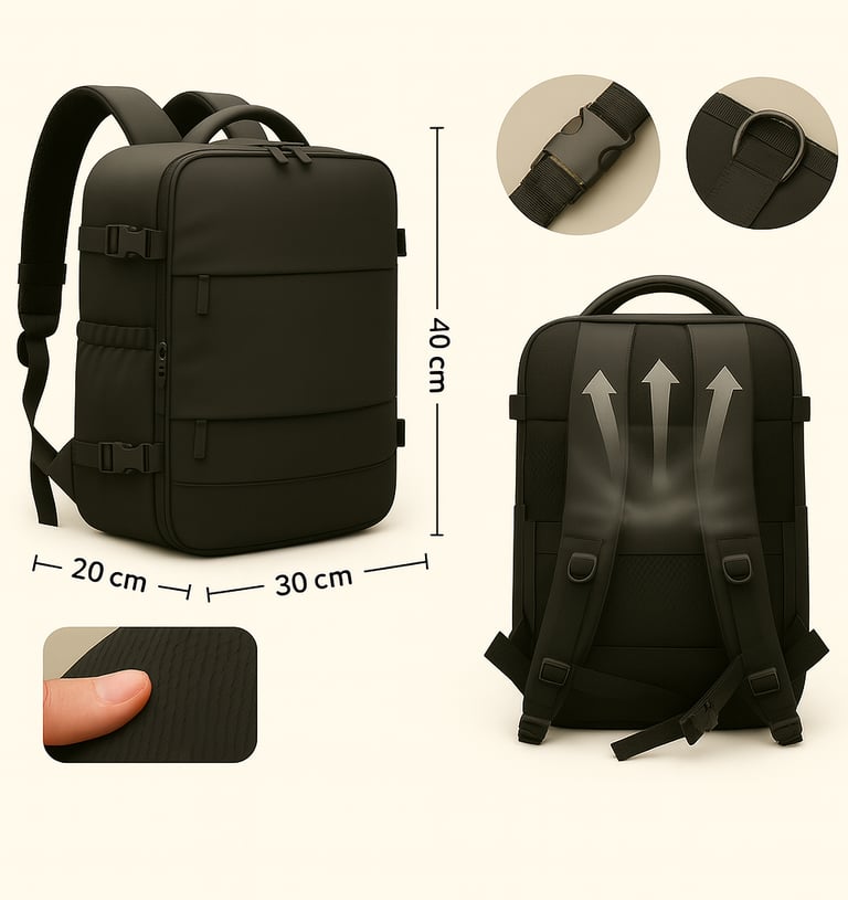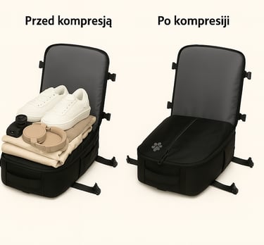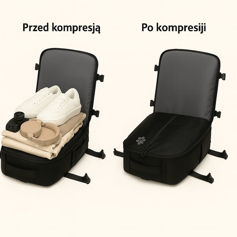 Plecak Travaro to ukłon w stronę osób, które chcą podróżować mądrzej — więcej, ale bez dopłat i bez chaosu w bagażu. Dzięki kompresji i dodatkom premium zabierasz ze sobą maksimum rzeczy, a jednocześnie zachowujesz pełną zgodność z wymiarami bagażu podręcznego. To rozwiązanie, które oszczędza czas, nerwy i pieniądze, a jednocześnie wygląda elegancko i solidnie. Wybierz wygodę, która naprawdę działa — teraz.