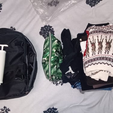 Średnio 3–5 zestawów ubrań, buty, kosmetyczkę i elektronikę.