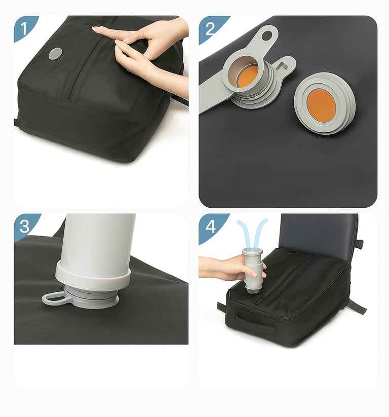 Do każdego plecaka Travaro dołączamy ekskluzywną pompkę próżniową — całkowicie gratis. To precyzyjnie wykonany dodatek stworzony z myślą o maksymalnej wygodzie i efektywności kompresji. Wykonana z wysokiej klasy materiałów, pracuje płynnie i niezwykle lekko, pozwalając w kilka chwil usunąć nadmiar powietrza z komory próżniowej. Jej ergonomiczny kształt zapewnia pewny chwyt, a perfekcyjne dopasowanie do zaworu gwarantuje maksymalną szczelność i wydajność działania. To luksusowy detal, który podnosi funkcjonalność plecaka i oferuje realną przewagę w podróży — bez żadnych dopłat.